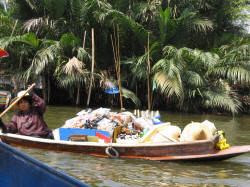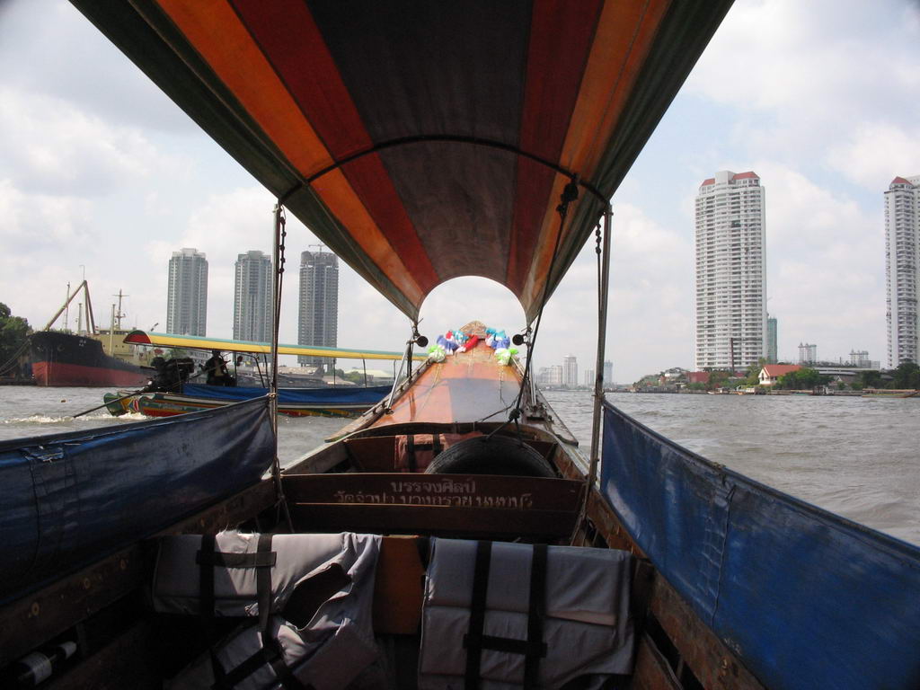 Gironzolo per la soi (soi significa +o- via laterale in thailandese), visto che comunque la curiosità di vedere anche quest'aspetto della vita thailandese era forte... era pieno di ragazze che vedendo i turisti gli si fiondavano addosso invitandolo ad entrare nel loro locale... curiosicchio un po di qua e di la, ma il giorno dopo è l'ultimo a bkk e devo vedere tutta la città, è tardi e sono troppo stanco... Si è fatto veramente tardi.. quindi non mi soffermo troppo, torno in albergo e nonostante gli arretrati di sonno punto la sveglia alle 8... In realtà dormo pochissimo, alle 8 sono già nel ristorante dell'albergo a far colazione... ho sonno, si, ma la voglia di vedere la città è tanta! Torno in camera e ridò un occhiata all'itinerario che mi ero proposto sulla lonley planet... vado a prendere lo sky train e nel mentre scatto un po di foto su Sukumvit road: ed eccomi alla fermata dello skytrain... e arrivo in poco tempo al porto dove farò una piccola crociera tra i canali di Bangkok che mi porterò nella zone del wat pho e wat phra. Le barche sulle quali è possibile fare la corciera sono 'ste robe qua: con motori che con tutta probabilità prima spingevano qualche veicolo commerciale... dei turbodiesel con intercooler che fan un casino tale da rendere quasi silenzioso in confronto il mio evinrude737 (il che è tutto un dire...). Mi accordo con il tipo delle barche per un giro di circa un ora per l'equivalente di circa 15 euro La vista dall'interno è questa qui: Lasciato il canale principale (mae nam chao phraya) ci dirigiamo verso dei canali interni molto, ma MOLTO caratteristici... e queste sono alcune delle cose che si possono vedere: Arrivo al capolinea dove dopo aver lasciato la mancia al tipo che guidava la barca, dato che gentilmente rallentava ogni qual volta puntavo la macchina fotografica su qualcosa, scendo e cammino verso il wat pho passando per questa amena strada... Prima di arrivare al wat pho vengo fermato da un tipo cortese, ben vestito e gentile, il quale mi informa che il wat pho è chiuso (!) e che sarebbe stato meglio per me visitare il tempio del buddha nero (????) che è aperto ed è molto più bello (!!)... mi chiama un tuktuk e mi invita a salire... in pratica ha fatto tutto lui! Declino gentilmente l'offerta, e mi dirigo verso il wat pho che è ovviamente aperto... in seguito scoprii che quei tipi son d'accordo con i tipi del tuktuk, i quali ti portano a far giri turistici per la città a vedere negozi di sete, artigianato locale, orologi taroccati e pietre preziose (false). Figurarsi se avevo anche tempo da perdere con queste quisquilie per turisti creduloni... Ed ecco il wat pho... e io nel wat pho dopo quasi 3 notti insonni...!! con il famoso Buddha disteso Mi dirigo poi verso il wat phra ed ecco alcune foto di questo bellissimo posto... Mi avanza un po di tempo, così attraverso il canale e visito anche il wat arun Torno sulla riva del fiume ad aspettare il battello che per l'esosissima cifra di 3 bath (circa 6/7 eurocent..!!) mi riporterà nella sponda opposta. Nel mentre sento che 2 coppie di turisti parlano con una tipa di quelle che organizza le crocierine sul fiume... e ad ascoltare le loro voci apprendo che il prezzo che io avevo pagato in precedenza non era "a persona", ma "a barca"...!! L'itinerario è diverso da quello che avevo fatto in precedenza, mi unisco quindi al gruppo e faccio un'altro giro Il museo nautico dove si paga per entrare... e vabè... il problema è che il prezzo è diverso se si entra con o senza macchina fotografica (!!)