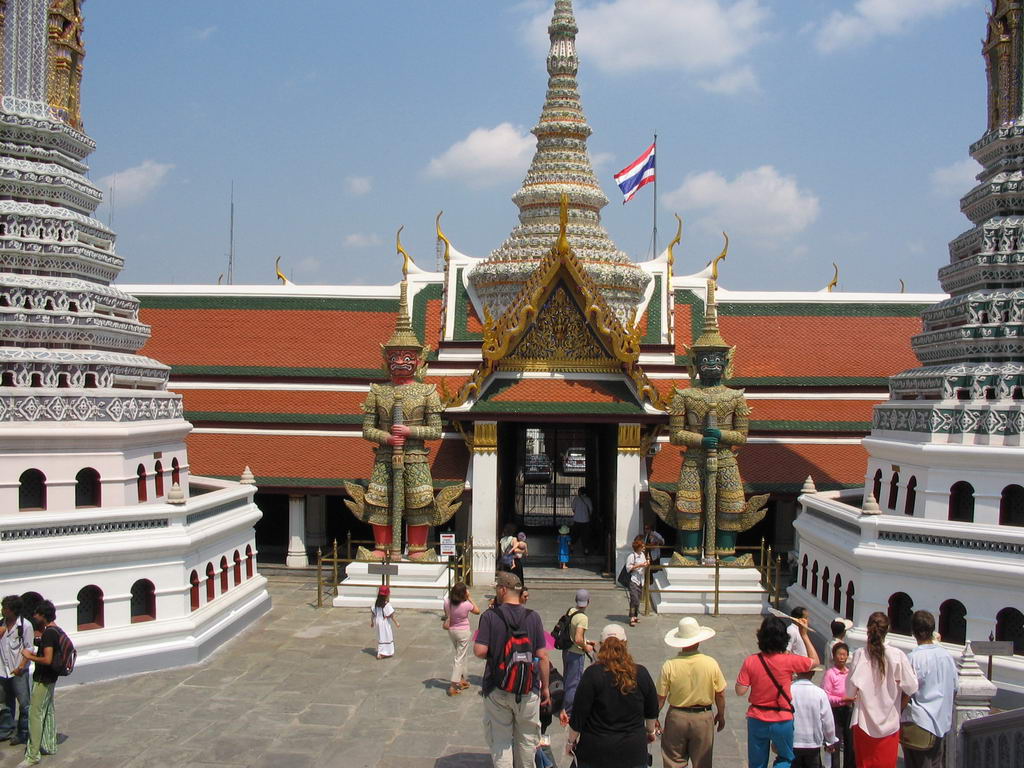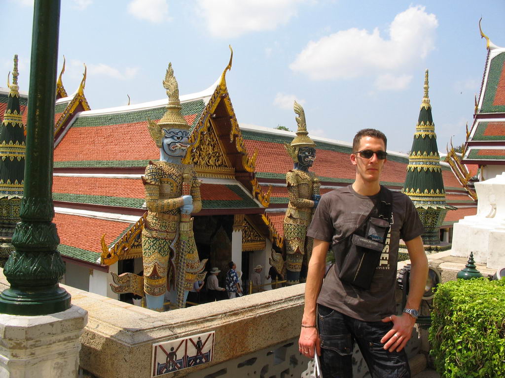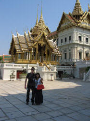 Arrivo al Windsor hotel alle 17 ora locale... non tardi, ma tutte le attrazioni turistiche citate nella lonley planet chiudono verso quell'ora... quindi non so bene come organizzare il resto della giornata... Dopo check-in in albergo e doccia esco in esplorazione della città. Quello che colpisce subito è l'odoraccio che aleggia in molti punti della città... dallo smog (nulla comunque di paragonabile con l'Havana a Cuba...) dovuto all'eccessivo traffico e alle bancarelle che emanano nell'aria un odore di cibo nauseabondo (per me, a loro evidentemente piace, dato che snobbano palesemente la nostra cucina...). Opto il comodissimo skytrain, inutile prendere il taxi, con il traffico che c'è si farebbe prima a piedi... E già qui capisco che anche in thai han la stessa mania dei cubani... ovvero aria condizionata a PALLA OVUNQUE si possa metterla.. ci sono sbalzi termici mostruosi! Mi dirigo verso il centro, dove cerco anche le prime cose che mi servono (una sim-card thai, un change per il denaro e altre cosuccie...) ed entro così nell'ipermercato più pieno di roba che abbia mai visto in vita mia... l'mbk! Centiania e centiania di piccoli negozietti disposti su una vastissima superficie e divisi su 5 piani a seconda della categoria merceologica trattata... questo iper è diventata tappa fissa delle giornate passate a Bangkok nel tardo pomeriggio, ovvero quando era troppo tardi per visitare qualcosa e troppo presto per vedere come girava la vita notturna... Ottimo il fatto di esser partiti con 5 kg di valigia... al ritorno saranno oltre 20...!!!